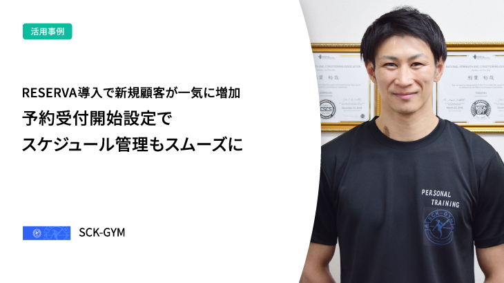 導入事例 利便性の高いRESERVA予約で、他店舗からの乗り換えにもつながる|SCK-GYM 10代から70代まで幅広い年代が通うパーソナルジム利便性の高いRESERVAを活用することで、集客率アップ 今回のインタビューは、東京都文京区にある「SCK-GYM(エスシーケイジム)」様にご協力いた 2026/01/14